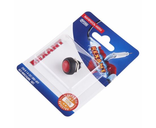 Выключатель-кнопка 250V 1А (2с) ON-OFF красная Micro (PBS-20А) Rexant (в упак. 1шт.)