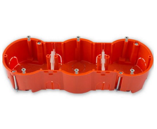 Коробка монтажная КЕ-505 исп.1, 3 местная предназначена для монтажа в несплошные (полые) стены и потолки (тонкие перегородки) и установки изделий для скрытой установки (соответствующих требованиям европейских стандартов) (для использования в составе рамочно-узловой системы сборки)