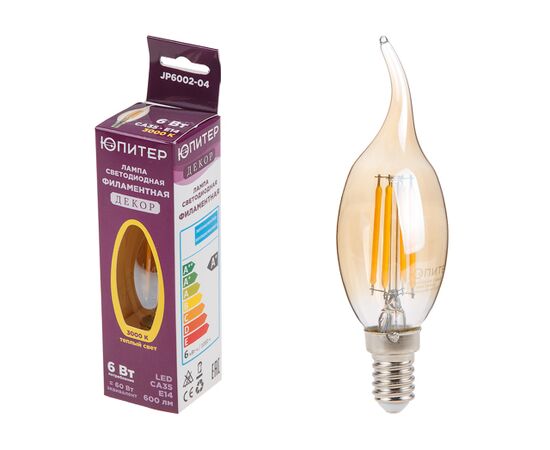Лампа светодиодная филаментная CA35 СВЕЧА НА ВЕТРУ 6 Вт E14 3000К ЮПИТЕР ДЕКОР
