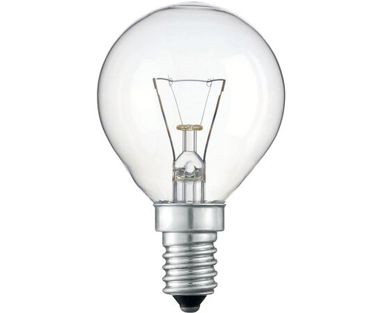 Колба лампы – прозрачная грушевидной, грибковой, формы, а также формы свечи и шарика. Лампы поставляются со стандартными цоколями E27/Е14 в мощностях: 25 Вт, 40 Вт, 60 Вт, 75 Вт, 95 Вт, 150 Вт, 200 Вт и 500 Вт. Средний срок службы лампы накаливания составляет 1000 часов.