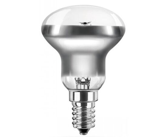 Зеркальные (рефлекторные) лампы R39 имеют узкий, направленный угол светового потока для освещения небольшой площади. Используется в люстрах, бра, настольных светильниках и других бытовых осветительных приборах.
