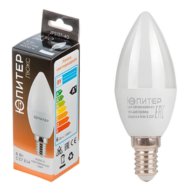 Лампа светодиодная C37 СВЕЧА 6 Вт 170-240В E14 4000К ЮПИТЕР ЛЮКС