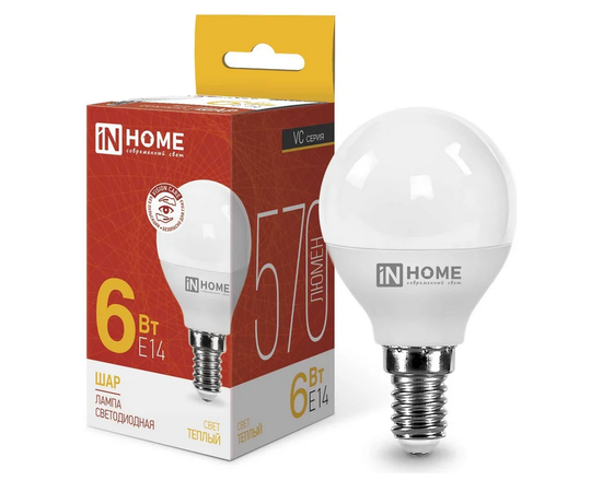 Лампа светодиодная LED-Шар-VC 6Вт 3000К тепл.бел. Е14 570лм 230В