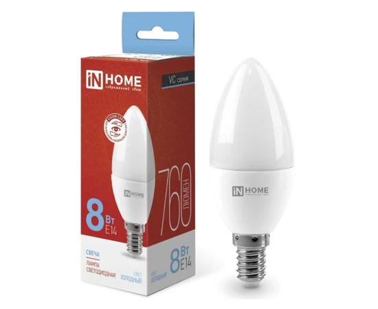 Светодиодная лампа LED-СВЕЧА-VC ТМ IN HOME , созданная по уникальной технологии VISION CARE, обеспечивает комфортный свет без вредных пульсаций, защищая глаза от усталости и раздражения. Изящная декоративная форма лампы добавит домашнему интерьеру романтики и индивидуальности. Светодиодная лампа-свеча очень экономична, ее использование позволяет сократить расходы на электроэнергию до 90%. Еще одним достоинством светодиодных источников света является долговечность эксплуатации, она прослужит не менее 30 000 часов (20 лет из расчета по 4 часа в день). Выпускается с цоколем Е14.
