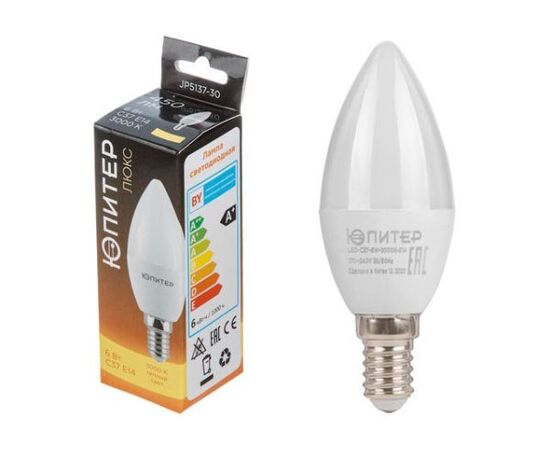 Лампа светодиодная C37 СВЕЧА 6 Вт 170-240В E14 3000К ЮПИТЕР ЛЮКС