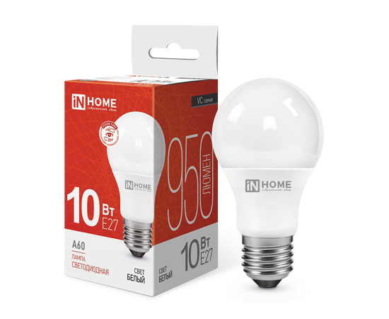 Лампа светодиод. LED-А60-VC 10 ВТ 230В Е27 4000К 950ЛМ IN HOME