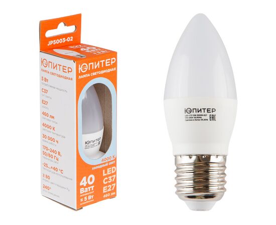 Лампа светодиодная C37 СВЕЧА 7,5 Вт 170-240В E27 4000К ЮПИТЕР ЛЮКС