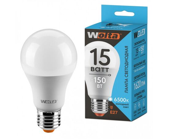 Светодиодная энергосберегающая лампа 30W60BL15E27 общего освещения торговой марки WOLTA® повторяют форму и размеры стандартной лампы накаливания типа «груша», формат A60, колба лампы матовая. Идеально подходит к любому светильнику, в котором используются данный тип ламп.