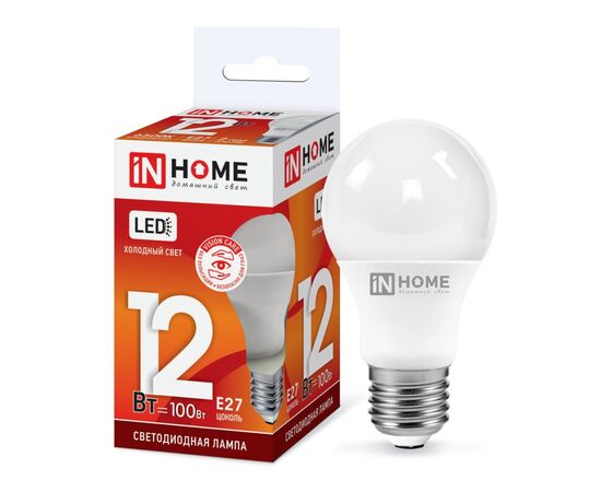 Лампа светодиодная LED-A60-VC от IN Home - это надежное и эффективное решение для освещения внутренних помещений. Обладает мощностью 12 Вт и цветовой температурой 6500 К, обеспечивая световой поток 1140 Лм. Благодаря матовому корпусу и форме груши, эта лампа идеально подходит для использования в светильниках с патроном Е27.