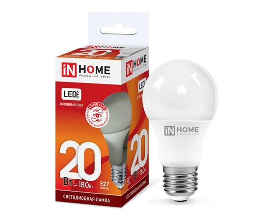 Лампа светодиодная LED-A60-VC от IN Home - это энергоэффективное и долговечное решение для освещения помещений. Имеет мощность 20 Вт и цветовую температуру 6500 К, обеспечивая световой поток 1900 Лм. Отлично подходит для использования в светильниках с цоколем Е27.