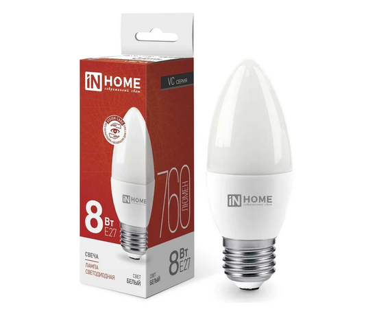 Светодиодная лампа LED-СВЕЧА-VC ТМ IN HOME , созданная по уникальной технологии VISION CARE, обеспечивает комфортный свет без вредных пульсаций, защищая глаза от усталости и раздражения. Изящная декоративная форма лампы добавит домашнему интерьеру романтики и индивидуальности. Светодиодная лампа-свеча очень экономична, ее использование позволяет сократить расходы на электроэнергию до 90%. Еще одним достоинством светодиодных источников света является долговечность эксплуатации, она прослужит не менее 30 000 часов (20 лет из расчета по 4 часа в день).