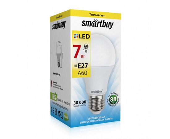 Светодиодная (LED) Лампа Smartbuy-A60-07W/3000/E27