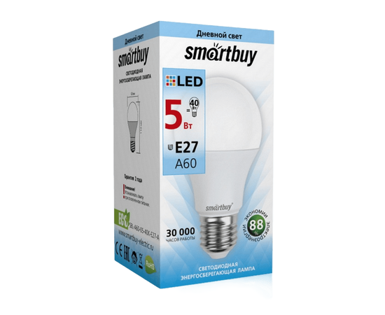 Светодиодная лампа Smartbuy A60 05W 4000K E27 - это энергосберегающее решение для вашего дома или офиса. Она обладает мощностью 5 Вт и цветовой температурой 4000 К, что создает приятную атмосферу и комфортное освещение. Лампа идеально подходит для любого светильника с цоколем E27.