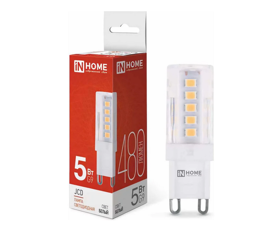 Лампа светодиодная LED-JCD 5Вт капс. прозр. 4000К нейтр.бел. G9 480лм 230В