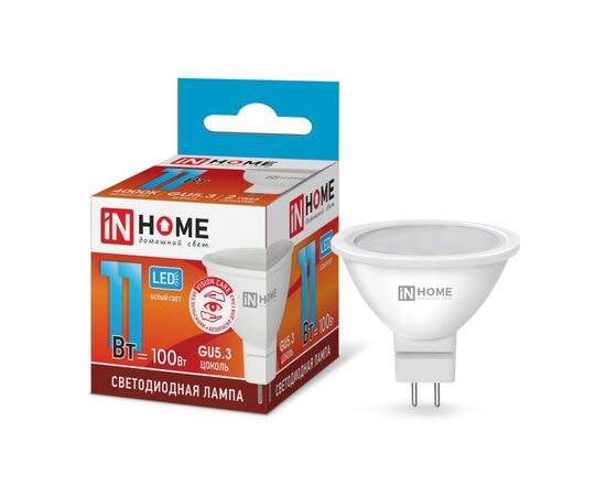 Светодиодная лампа LED-JCDR-VC от IN Home - это отличный выбор для тех, кто ценит качество и эффективность освещения. Она обладает мощностью 11 Вт, цветовой температурой 4000 К и световым потоком 990 Лм. Благодаря цоколю GU5.3 эта лампа может быть использована для замены галогенных ламп в различных типах светильников, включая потолочные и мебельные софиты. Кроме того, она отличается высокой энергоэффективностью класса А+, что позволяет значительно снизить затраты на электроэнергию.