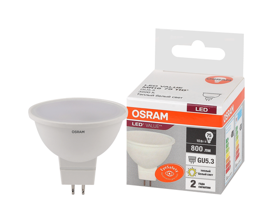 Светодиодные лампы – это осветительное оборудование, в качестве источника света в котором применяются светодиоды. Лампа светодиодная OSRAM LED Value MR16, 800лм, 10Вт (замена 75Вт), 3000К (теплый белый свет)