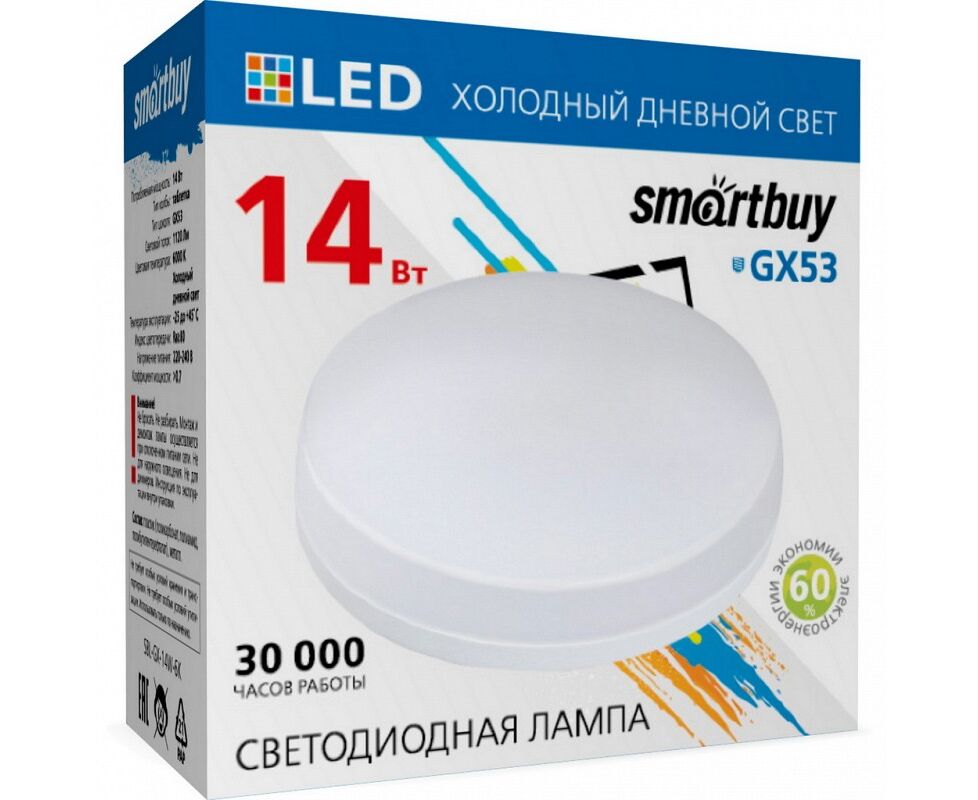 Светодиодная (LED) Tablet GX53 Smartbuy-14W/6000K/Мат рассеиватель