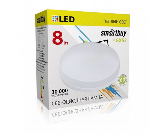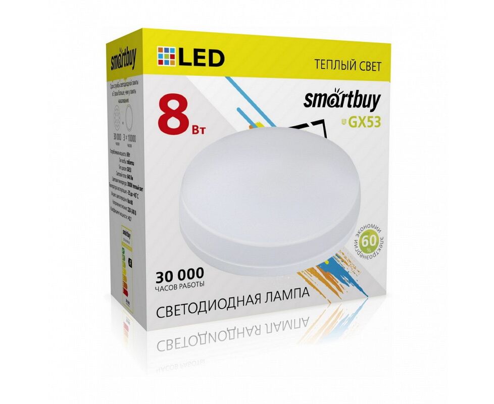 Светодиодная (LED) Tablet GX53 Smartbuy-8W/3000K/Мат рассеиватель