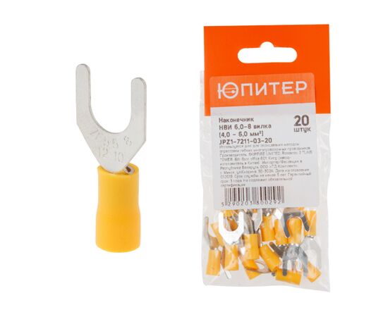 Наконечник НВИ 6,0-8 вилка (4,0 - 6,0 мм2) (20 шт) Юпитер