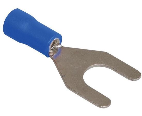 Наконечник вилочный изолированный предназначен для оконцевания методом опрессовки гибких многопроволочных медных проводников. Изоляция наконечника изготовлена из полипропилена не поддерживающего горения, а контактная часть из высококачественной меди. Наконечник предназначен для крепления к клеммам электрического оборудования на основе винтовой фиксации.