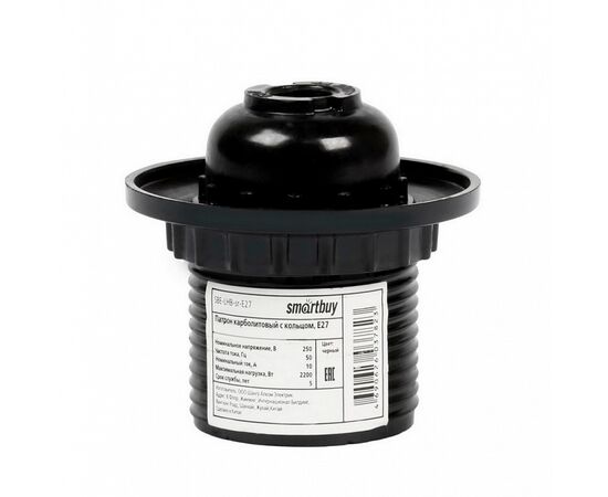 Патрон карболитовый с кольцом от бренда SMARTBUY. Этот продукт имеет цоколь Е27 и выполнен в черном цвете. Он идеально подойдет для ваших электромонтажных нужд.