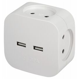 Тройник SP-4-USB-W Разветвитель электрический ЭРА на 4 розетки + 2хUSB 2400mA, без за...