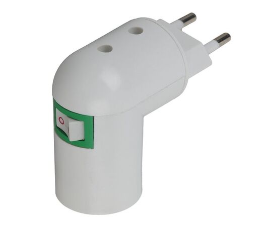 Переходник вилка-Е27 позволяет с помощью расположенного на нём выключателя включать (отключать) освещение не вынимая переходник из розетки.