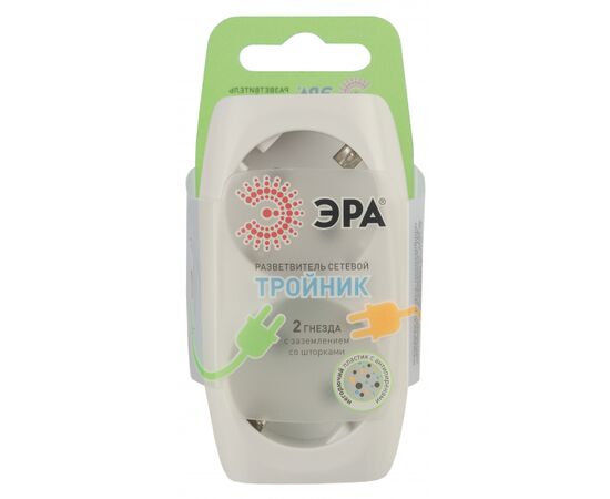 Тройник ЭРА SP-2е-I 2гн, с заземл., со шторками (сл. кость)