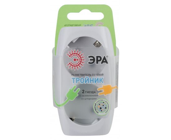 Тройник ЭРА SP-2е-W 2гн, с заземл., со шторками (белый)