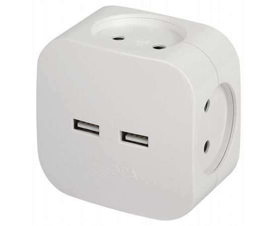 Тройник (адаптер) ЭРА с 4-мя розетками и 2-мя USB гнездами для зарядки портативных устройств. Новые тройники с USB собственного дизайна ЭРА отличаются эргономичным конструктивом и удобством в использовании. Идеален для зарядки мобильных телефонов и планшетов. Незаменим с собой в дороге. Особенно актуален, когда в помещении мало источников подключения - можно из одной розетки сделать четыре и при этом ещё заряжать 2 устройства одновременно через USB. Максимальная мощность USB разъемов: 2400 мА.