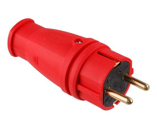 Вилка (с/з, 16А, 250В) каучук, красная Юпитер