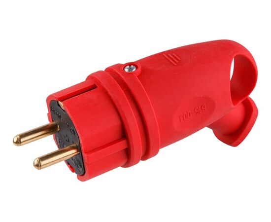 Вилка угловая с ушком (с/з, 16А, 250В) каучук, красная Юпитер