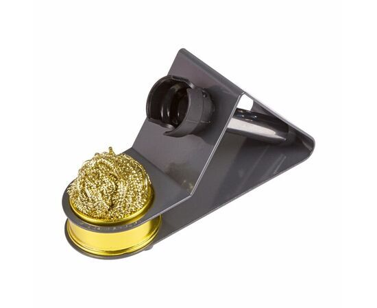 Подставка под паяльник + стружка для очистки жала REXANT предназначена для безопасного хранения паяльника при нагревании, в промежутках между использованием и охлаждении. Корпус изготовлен из металла с ложементом под медную стружку для очистки жала паяльника от остатков припоя. Стружка для очистки жала паяльника в комплекте. Паяльник легко и удобно помещается в направляющую.