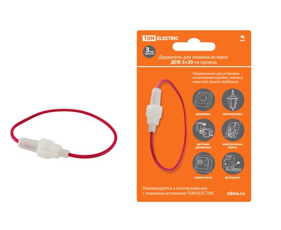 Держатель для плавких вставок ДПВ 5х20 на провод TDM/220