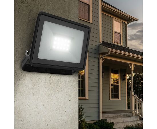 Прожектор светодиодный уличный с высоким световым потоком. Корпус -черный, изготовлен из прочного алюминия, стекло закаленное. Экономичная LED-технология сократит до 90% затрат на электроэнергию. Прожектор устойчив к механическим воздействиям, защищен от дождя и пыли, работает при широком диапазоне температур (от -40 до +45). Отличается простой и быстрой установкой: есть кронштейн специальной формы и регулировочные болты для выбора направления света. Подходит как для внутреннего, так и для наружного применения.