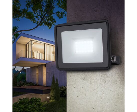 Прожектор светодиодный уличный с высоким световым потоком. Корпус -черный, изготовлен из прочного алюминия, стекло закаленное. Экономичная LED-технология сократит до 90% затрат на электроэнергию. Прожектор устойчив к механическим воздействиям, защищен от дождя и пыли, работает при широком диапазоне температур (от -40 до +45). Отличается простой и быстрой установкой: есть кронштейн специальной формы и регулировочные болты для выбора направления света. Подходит как для внутреннего, так и для наружного применения.