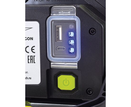 Фонарь можно заряжать от любого источника питания с разъемом USB. Во время зарядки мигает индикатор уровня заряда. При полном заряде индикатор горит постоянно. После окончания зарядки плотно закройте крышку для обеспечения влагозащиты.