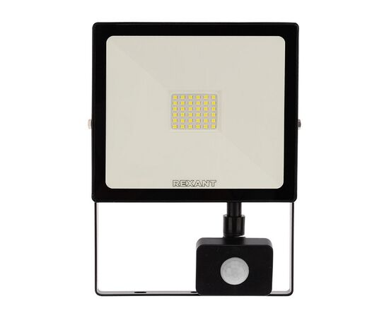 Светодиодный прожектор REXANT мощностью 50 Вт используется для наружного и внутреннего освещения. Предназначен как для промышленного, так и для бытового освещения: дворов, подсобных помещений, приусадебных хозяйств, билбордов и так далее. Устойчив к механическим воздействиям благодаря прочному алюминиевому корпусу. Степень пылевлагозащиты IP65 позволяет использовать прибор в уличных условиях под навесом. Поворотная скоба дополнительно позволяет регулировать угол освещения.Встроенный микроволновый датчик реагирует на движение в зоне действия и автоматически включает освещение. Радиус срабатывания составляет от 2 до 10 м, а время задержки – от 10 сек до 5 минут.