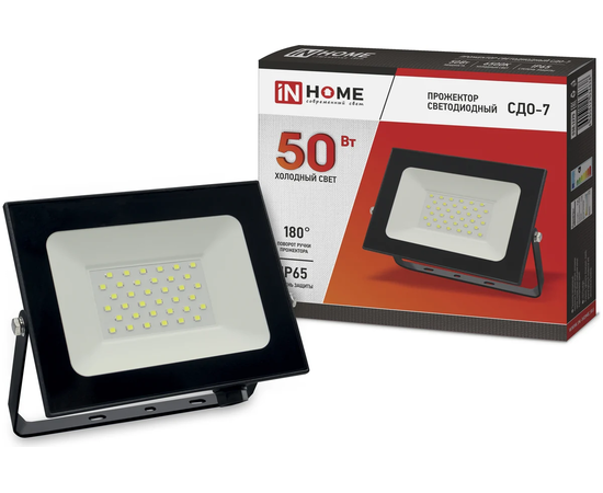 Прожектор светодиодный СДО-7 50Вт 230В 6500К IP65 черный IN HOME