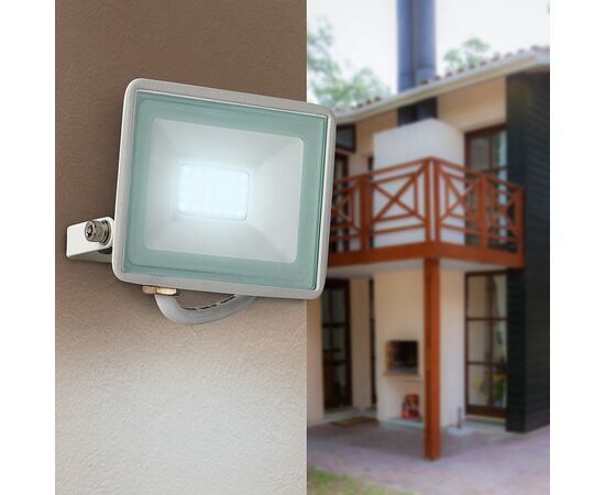 Прожектор светодиодный уличный с высоким световым потоком. Холодный белый свет. Корпус-белый., изготовлен из прочного алюминия, стекло закаленное. Экономичная LED-технология сократит до 90% затрат на электроэнергию. Прожектор устойчив к механическим воздействиям, защищен от дождя и пыли, работает при широком диапазоне температур (от -40 до +45). Отличается простой и быстрой установкой: есть кронштейн специальной формы и регулировочные болты для выбора направления света. Подходит для наружного и ландшафтного освещения светлых зданий, сооружений, парков, скульптур, памятников, а также для декоративной подсветки объектов.