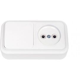 Блок выкл. 1 клав. + розетка (открытая, б/з) белая, Пралеска, BYLECTRICA