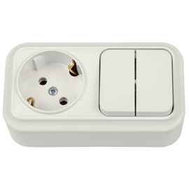 Блок выкл. 2 клав. + розетка (открытая, б/з) бежевая BYLECTRICA