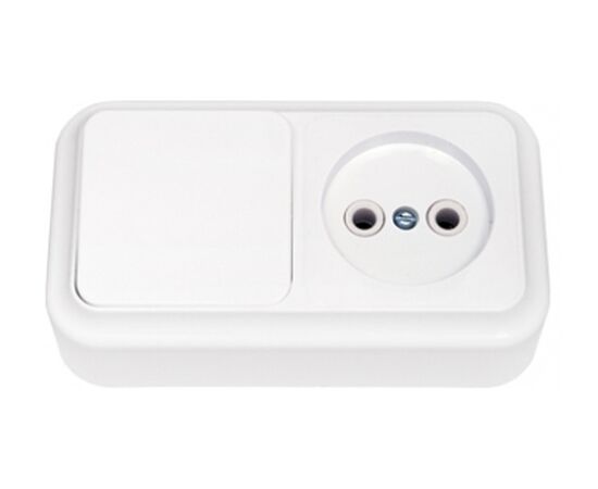 Блок выкл. 1 клав. + розетка (открытая, с/з) белая, Пралеска, BYLECTRICA