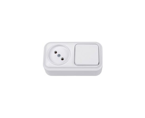 Выключатель 1 клавиша + розетка открытая белая Вариант BYLECTRICA (В-РЦ-7111) изготовлен из ABS пластика, который обладает высокой ударопрочностью. Климатическое исполнение УХЛ4. Номинальный ток выключателя: 10 А. Номинальный ток розетки: 16 А. Сечение проводников (для выключателя) от 1,0 до 2,5 мм². Сечение проводников (для розетки) от 1,5 до 2,5 мм². Максимальный диаметр подводимого к выключателю кабеля 16 мм