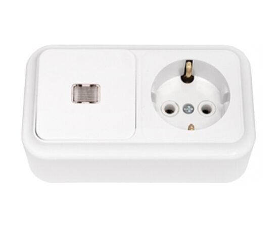 Блок выкл. 1 клав. + розетка (открытая, б/з) со световой индикацией, белая, Пралеска, BYLECTRICA