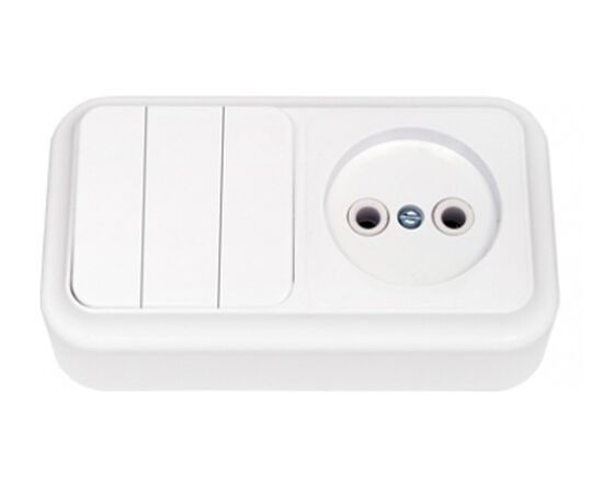 Блок выкл. 3 клав. + розетка (открытая, б/з) белая, Пралеска, BYLECTRICA