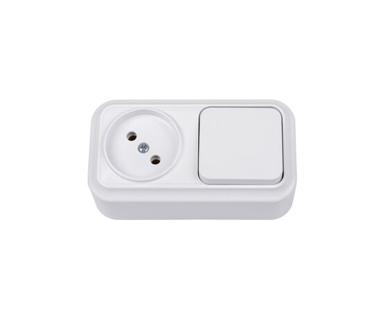 Блок выкл. 1 клав. + розетка (открытая, б/з) белая,Bylectrica