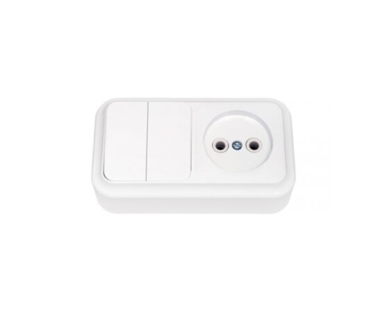 Блок выкл. 2 клав. + розетка (открытая, б/з) белая, Пралеска, Bylectrica