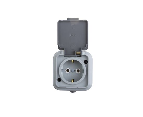 Розетка 1-ая (открытая, б/з, брызг. защ.) серая, Пралеска Аква, Bylectrica