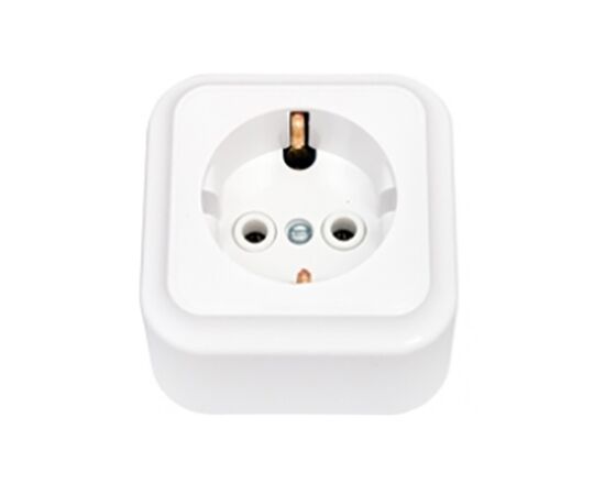 Розетка 1-ая (открытая, с/з) белая, Пралеска, Bylectrica